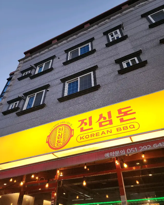 멀리서부터 눈에 띄는 밝은 노란색 간판이 나를 반겼다. “진심돈 KOREAN BBQ”라는 문구가 왠지 모르게 믿음직스러웠다. 가게 안으로 들어서자, 깔끔하고 쾌적한 분위기가 인상적이었다. 테이블 간 간격도 넉넉해서 편안하게 식사를 즐길 수 있을 것 같았다.