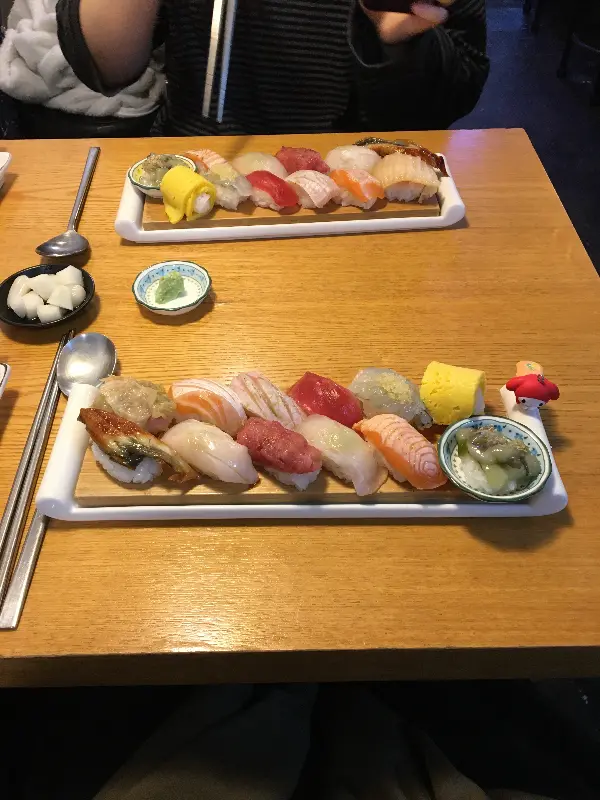 드디어 기다리고 기다리던 쉐프 추천 초밥이 나왔다. 윤기가 자르르 흐르는 신선한 횟감과 톡톡 터지는 밥알의 조화가 눈으로만 봐도 황홀했다.