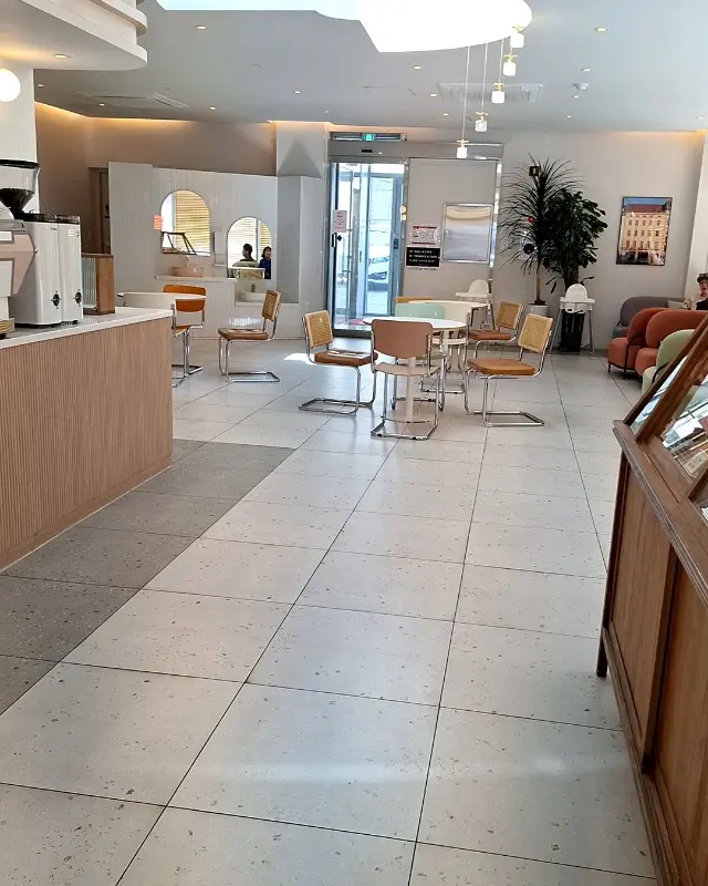 넓고 깔끔한 카페 내부 모습. 테이블 간 간격도 넉넉해서 편안하게 시간을 보낼 수 있다.