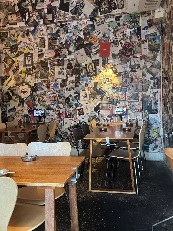 문을 열고 들어서는 순간, 마치 다른 차원에 발을 들인 듯한 느낌. 낡은 듯하면서도 세련된 인테리어가 묘하게 조화를 이루고, 은은한 조명이 공간을 따뜻하게 감싸 안아. 벽면 가득 붙은 빈티지 포스터와 그림들이 ‘나 힙하다’ 외치는 듯했지만, 과하지 않아서 오히려 편안했어. 마치 잘 꾸며놓은 친구네 아지트에 놀러 온 기분이랄까? 평일 저녁인데도 이미 많은 사람들로 북적였어. 역시 맛집은 맛집인가 봐. 다들 어찌 알고 찾아오는 건지, 역시 힙스터 레이더는 무시 못 해.
