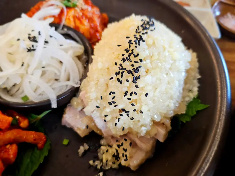 Yo, 비주얼부터가 완전 힙스터 감성 자극! 윤기 좔좔 흐르는 보쌈 위에 눈처럼 소복하게 쌓인 마늘 소스… 이건 마치 랩 스타의 블링블링한 액세서리 같잖아! 사진을 안 찍을 수가 없었어. 인스타에 바로 업로드 각!