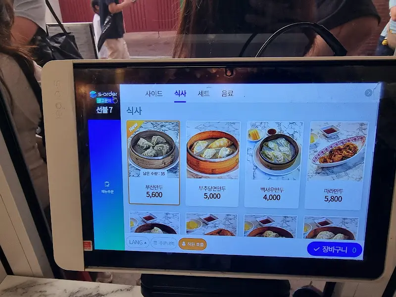 기다리는 동안 메뉴 스캔 딱 끝내고, 드디어 입장! 테이블에 놓인 태블릿으로 주문하는 시스템. 세상 참 편해졌어, 힙하게 터치 몇 번으로 주문 완료. 근데 직원분이 그러시더라, 추가 주문은 안 된다고. 신중하게 골라야 한다고. 오케이, 접수 완료. 오늘 나의 선택은 모듬 만두, 쿵푸면, 마라비빔면, 그리고 오이무침! 라인업 죽이지 않냐?