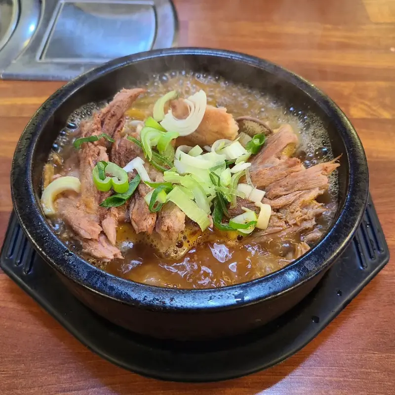 이어서 등장한 시래기 뼈다귀탕은 뼈다귀탕에 향긋한 시래기가 듬뿍 들어간 메뉴였다. 어릴 적 할머니가 끓여주시던 시래기 된장국의 향수를 불러일으키는 익숙한 향기가 코를 간지럽혔다. 국물을 맛보니, 시래기 특유의 구수한 풍미가 뼈다귀 육수와 절묘하게 어우러져 깊은 감칠맛을 냈다. 뼈다귀에 붙은 살코기와 시래기를 함께 먹으니, 입안 가득 퍼지는 풍성한 식감이 일품이었다.