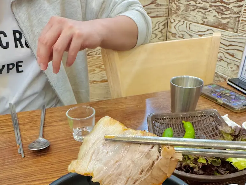 이번에는 한방보쌈에 눈길을 돌렸다. 젓가락으로 조심스럽게 집어 든 보쌈 한 점은, 겉은 윤기가 자르르 흐르고 속은 촉촉함을 그대로 머금고 있었다. 코를 찌르는 한방 향은 은은하게 풍미를 더했고, 입에 넣는 순간 부드럽게 녹아내리는 식감은 지금까지 먹어본 보쌈 중 단연 최고였다.