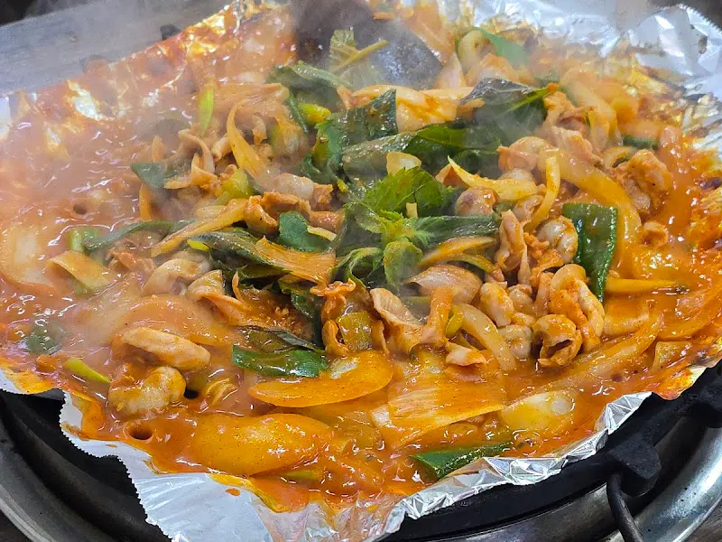 특히, 닭내장과 함께 볶아진 양파와 깻잎은 닭내장의 풍미를 더욱 깊게 만들어 주었다. 아삭아삭한 양파의 식감과 향긋한 깻잎의 향이 닭내장과 완벽하게 조화를 이루었다. 닭내장볶음을 먹는 동안, 젓가락을 멈출 수가 없었다.