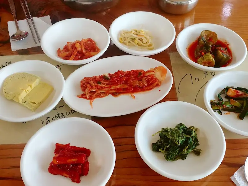 자리에 앉아 메뉴를 살펴보니, 단 두 가지 메뉴만이 존재했다. 청국장과 순두부. 메뉴가 단촐하다는 것은, 그만큼 한 가지 음식에 집중하고 있다는 증거다. 마치 특정 효소의 활성 부위만 연구하는 것처럼, 이들은 청국장과 순두부에 모든 정성을 쏟아붓는 듯했다. 청국장을 주문하자, 곧바로 밑반찬들이 테이블 위를 가득 채웠다. 와 에서 확인할 수 있듯이, 반찬의 가짓수도 다양하고 색감도 다채로웠다.