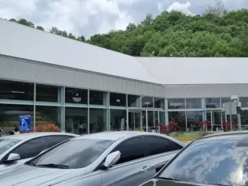 남지 쪽으로 드라이브하다가 진짜 어마어마한 카페를 발견했지 뭐야? 멀리서부터 웅장한 건물이 눈에 확 들어오는데, 마치 비행기 격납고처럼…
