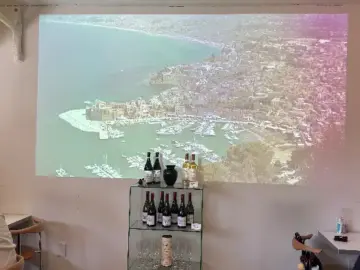 카페 내부에 설치된 프로젝터로 상영되는 도시 풍경과 진열된 와인들이 이색적인 분위기를 더합니다. 친구 따라 강남 간다는 말,…