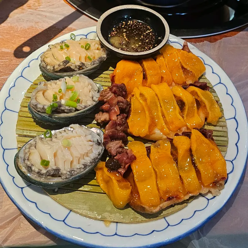 해물찜에 정신이 팔려 있을 때, 갑오징어 물회 등장! 살얼음 동동 뜬 육수에 갑오징어가 듬뿍! 시원하면서도 새콤달콤한 육수가 입안을 감싸는 순간, 더위가 싹 가시는 느낌이었다. 갑오징어는 어찌나 쫄깃한지, 씹을수록 고소한 맛이 느껴졌다. 물회에 들어있는 야채들도 신선해서 아삭아삭 씹는 재미가 있었다.
